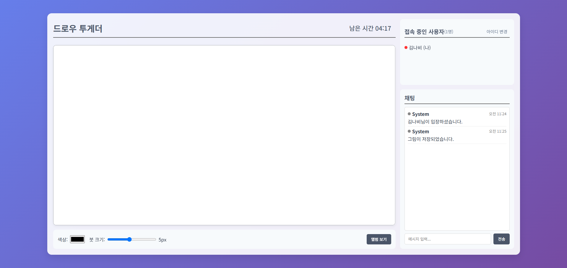 나는 예전부터 다수의 인원이 함께 그림판에서 그림을 그릴 수 있는 웹 사이트를 만들어 보고 싶었다.