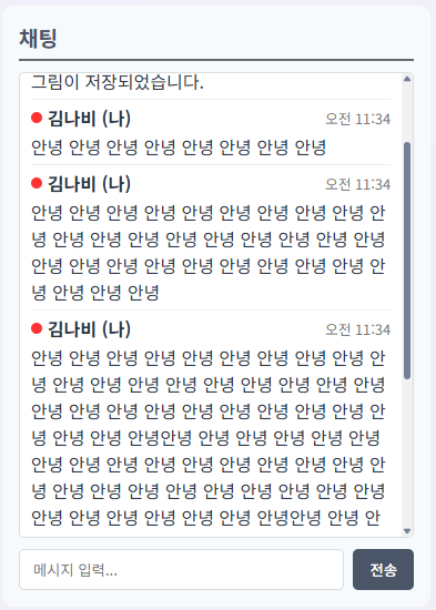 하지만 채팅을 입력해도 채팅창에 글이 올라가지 않고 멈춰있었다.