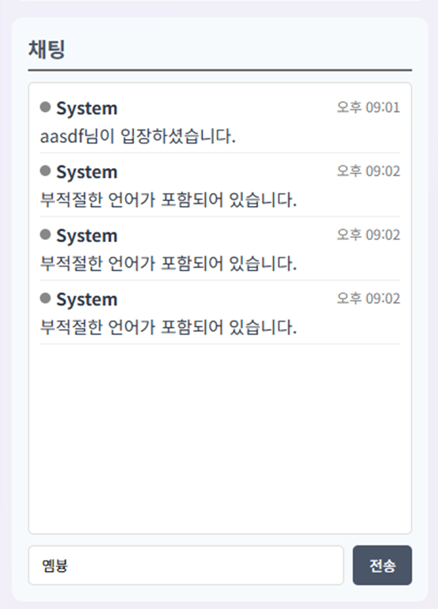 반복 채팅 제한 기능이 아주 잘 작동한다.