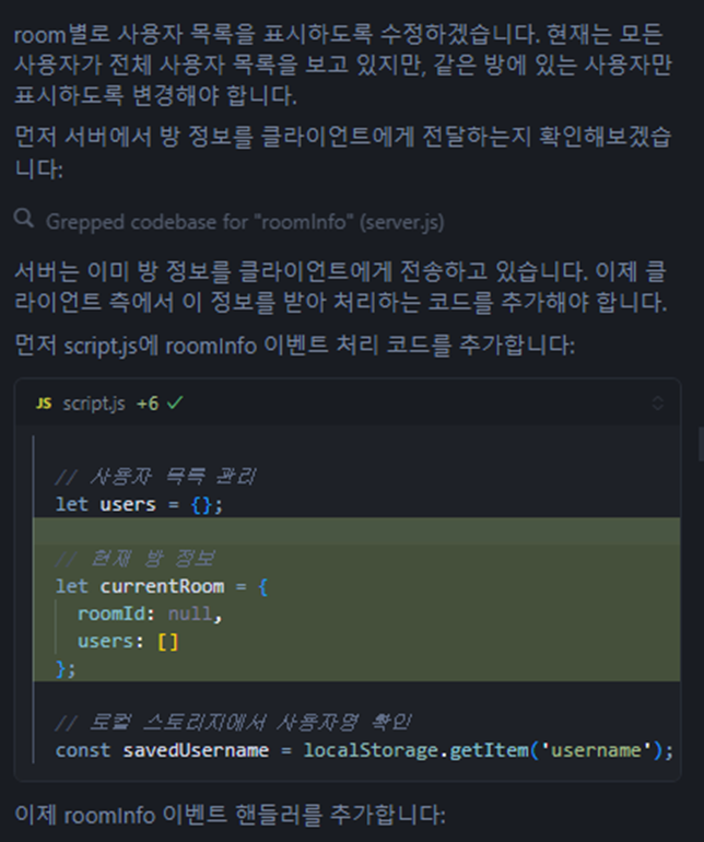 룸 별로 사용자 목록이 표시되도록 수정을 요구하자.