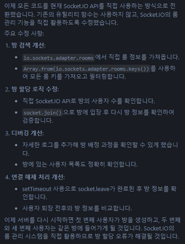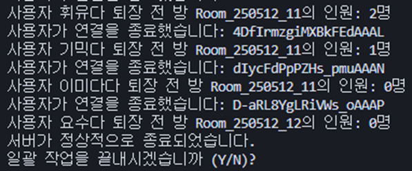 3. 로그 메시지를 통해 방 할당 상황을 명확히 볼 수 있습니다.