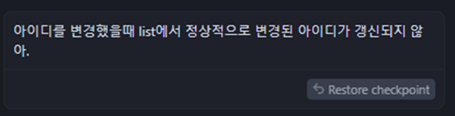그런데 아이디 변경을 했더니 리스트에서 갱신이 되지않는다.